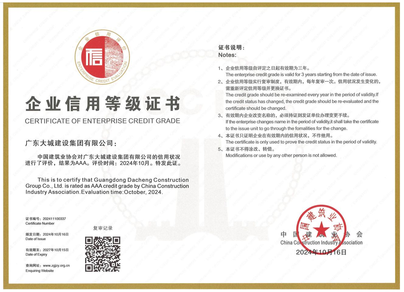詳細...我司榮獲全國“建筑業AAA級信用企業”稱號